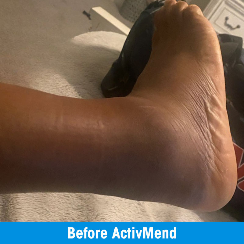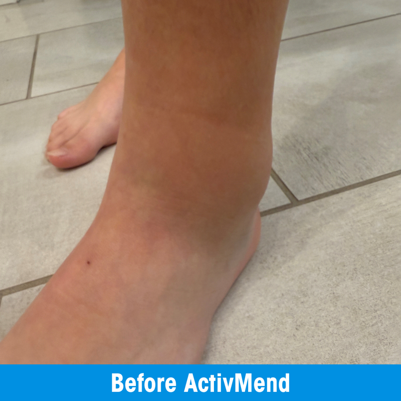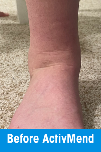 In documented cases using ActivMend, visible swelling reduction occurred within 24 hours. One case measured ankle circumference dropping from 54 cm to 52 cm in a day (with photos and transcript). Individual results vary.