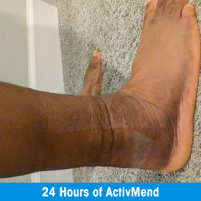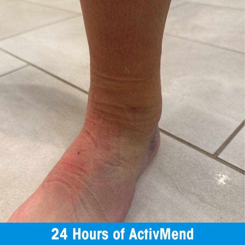 ActivMend is a high-potency ankle patch designed to rapidly reduce swelling and speed recovery from sprains and strains. In a physical therapist’s firsthand case of a high-grade ankle sprain, swelling dropped 2 cm within 24 hours of applying ActivMend—and was even lower at 48 hours, when swelling typically peaks.